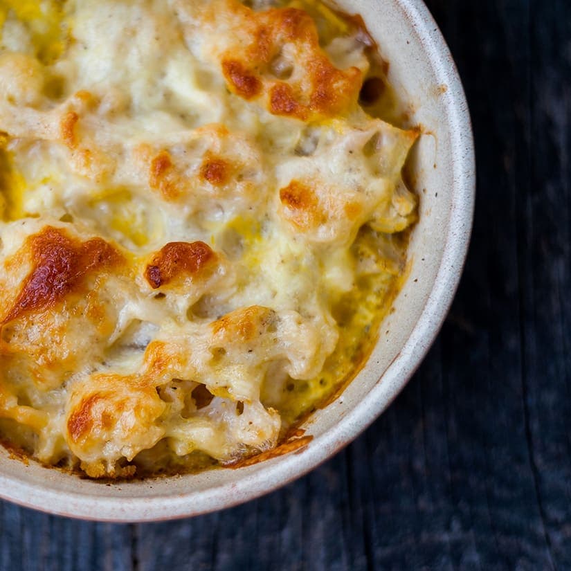 Gratin de chou-fleur au fromage bleu et aux noix