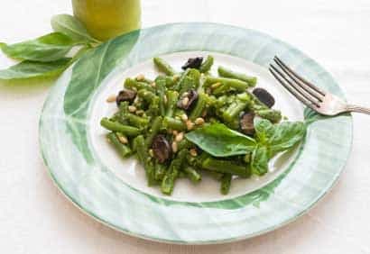 1. Dans une casserole d'eau bouillante salée, cuire les haricots verts pendant 4 minutes ou jusqu'à ce qu'ils soient tendres mais encore croquants. Égoutter. (Vous pouvez préparer les haricots verts, les rincer à l'eau froide, les envelopper dans un linge humide et les mettre dans un sac de plastique. Ils se conserveront jusqu'au lendemain au réfrigérateur.)