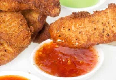 - Dans un grand poêlon à surface antiadhésive, chauffer l'huile à feu moyen-vif. Mettre la moitié des lanières de poulet côte à côte dans le poêlon. Cuire pendant environ 5 minutes ou jusqu'à ce que le dessous des lanières de poulet soit doré. À l'aide d'une pince, retourner les lanières de poulet. Poursuivre la cuisson pendant environ 5 minutes ou jusqu'à ce que le poulet soit doré à l'extérieur et qu'il ait perdu sa teinte rosée à l'intérieur. Mettre les lanières de poulet cuites sur une plaque de cuisson tapissée d'essuie-tout et garder au chaud. Cuire le reste des lanières de poulet de la même manière. Servir le poulet accompagné de la trempette aux tomates.
