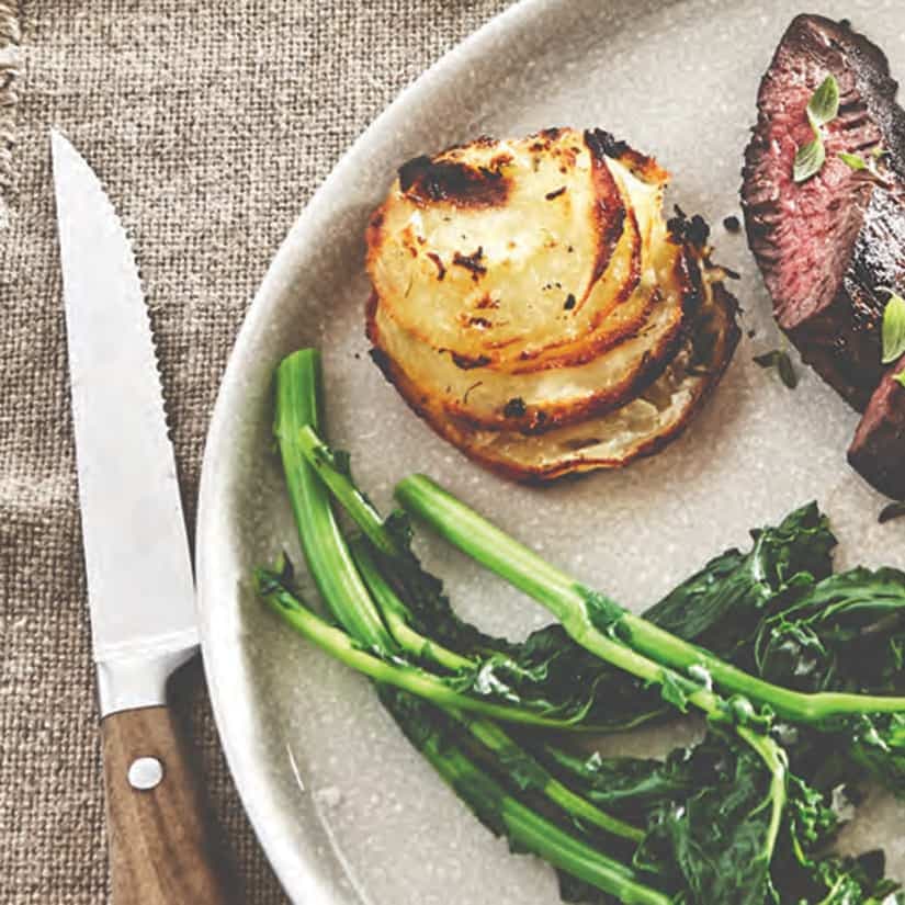 2. Dans 4 moules à muffins beurrés, empiler les tranches de pommes de terre. Couvrir de papier d’aluminium et cuire au four préchauffé à 400 °F (200 °C) pendant 30 minutes. Retirer le papier d’aluminium et poursuivre la cuisson de 10 à 15 minutes ou jusqu’à ce que les pommes de terre soient tendres et dorées. Laisser refroidir 5 minutes avant de démouler à l’aide d'une spatule.