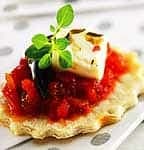 - À l'aide d'un emporte-pièce rond de 1 3/4 po (4,5 cm) de diamètre, tailler 20 cercles dans la croûte à pizza. Déposer les mini-croûtes sur une plaque de cuisson et garnir chacune de 1 c. à thé (5 ml) de salsa égouttée, d'un cube de feta et d'un morceau d'olive.