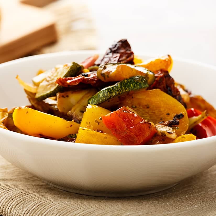 - Dans une sauteuse, faites chauffer l'huile sur feu vif; faites revenir l'aubergine et les courgettes, plusieurs morceaux à la fois, jusqu'à ce qu'ils soient légèrement dorés; au fur et à mesure, transférez-les dans une passoire ou dans une assiette recouverte d'essuie-tout pour égoutter l'excédent d'huile.