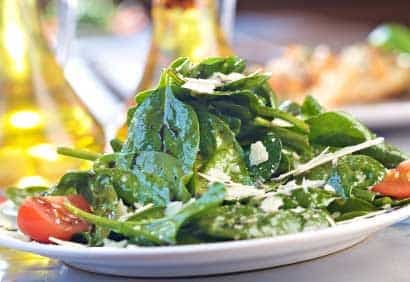 - Dans un bol à salade, mélanger les tomates, les épinards, le vinaigre de vin, l'huile et le sel. Servir aussitôt.