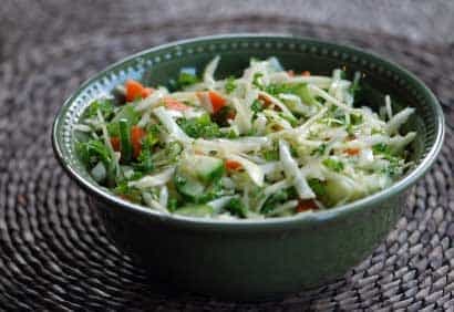 - Verser la vinaigrette sur la préparation de chou et mélanger pour bien enrober les ingrédients. Couvrir et réfrigérer pendant 1 heure. (Vous pouvez préparer la salade de chou à l'avance et la couvrir. Elle se conservera jusqu'à 2 jours au réfrigérateur.)