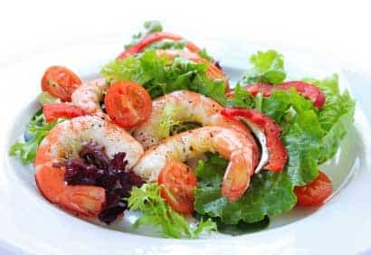 - Au moment de servir, dans un saladier, mélanger les verdures réservées et le reste de la sauce à la moutarde. Répartir la salade dans des assiettes individuelles. Garnir des lanières de poivrons rouges et des crevettes. Parsemer des graines de sésame grillées.