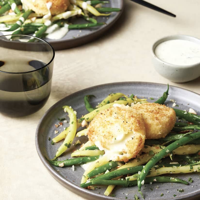 - Au moment de servir, mettre la salade de haricots dans une assiette de service ou des assiettes individuelles. Garnir du chèvre croustillant. Parsemer de persil italien haché, si désiré. Servir avec le reste de la vinaigrette.