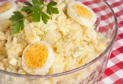 Salade de pommes de terre à la grecque, avec oeufs durs et fromage feta