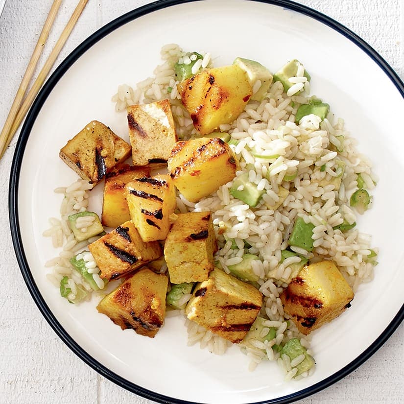 - Ajouter le riz, l'avocat et les oignons verts, et mélanger.