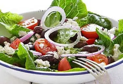 - Dans un saladier, mélanger la laitue, les tomates, le concombre, le poivron, l'oignon rouge, le fromage feta et les olives.