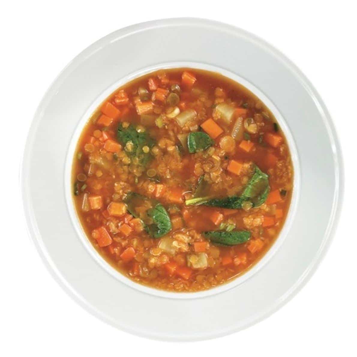 - 2. Ajouter les pâtes de tomates et de cari et mélanger. Ajouter le bouillon, l'eau et les lentilles et porter à ébullition. Réduire le feu, couvrir et laisser mijoter pendant environ 12 minutes ou jusqu'à ce que les lentilles soient tendres. Ajouter les épinards et mélanger.