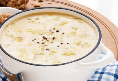 - Dans une grande casserole, faire fondre le beurre à feu moyen. Ajouter les poireaux et l'oignon et cuire, en brassant souvent, pendant environ 5 minutes ou jusqu'à ce qu'ils aient ramolli. Ajouter la farine et cuire, en brassant, pendant environ 2 minutes ou jusqu'à ce qu'elle commence à dorer. Incorporer petit à petit le bouillon, l'eau, la bière et le sel et porter au point d'ébullition. Réduire à feu doux, couvrir et laisser mijoter pendant 30 minutes.