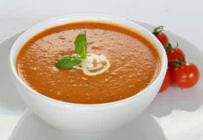 - Au robot culinaire ou au mélangeur, réduire la préparation de tomates en purée lisse, en plusieurs fois. Remettre la purée de tomates dans la casserole. Ajouter la préparation de fenouil réservée, le basilic et le reste du sel et du poivre et mélanger. (Vous pouvez préparer la soupe cette étape, la laisser refroidir et la mettre dans un contenant hermétique. Elle se conservera jusqu'à 2 jours au réfrigérateur et jusqu'à 2 mois au congélateur.)