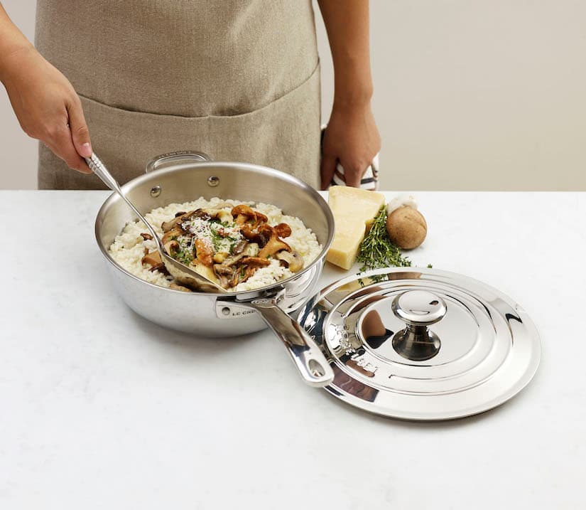 Et ça tombe bien : Le Creuset offre une collection en acier inoxydable de batterie de cuisine confectionnée avec son légendaire souci du détail !