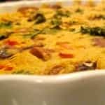 Préchauffez votre four à 350°F. Faire revenir les champignons et les poivrons coupés en petits morceaux dans de l'huile d'olive. Combiner le reste des ingrédients (sauf les haricots) et les passer au mélangeur jusqu'à l'obtention d'une pâte lisse. Versez les légumes, les haricots rouges (égouttés et rincés) dans un moule à tarte préalablement huilé. Recouvrir de pâte et saupoudrer de coriandre fraîche. Mettre un four environ 30 minutes. À déguster avec une salade verte. Bon appétit!