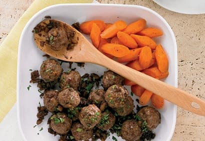 - Dans un bol, mélanger délicatement les boulettes de boeuf haché avec le chutney de pommes. Parsemer de persil.