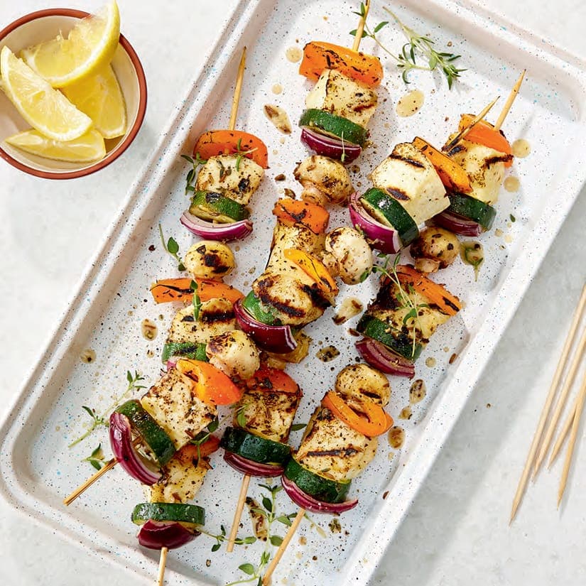 Plus on laisse mariner le fromage et les légumes, plus les brochettes seront savoureuses. On peut donc mélanger l’ensemble des ingrédients la veille et les laisser reposer jusqu’à 24 heures au réfrigérateur.