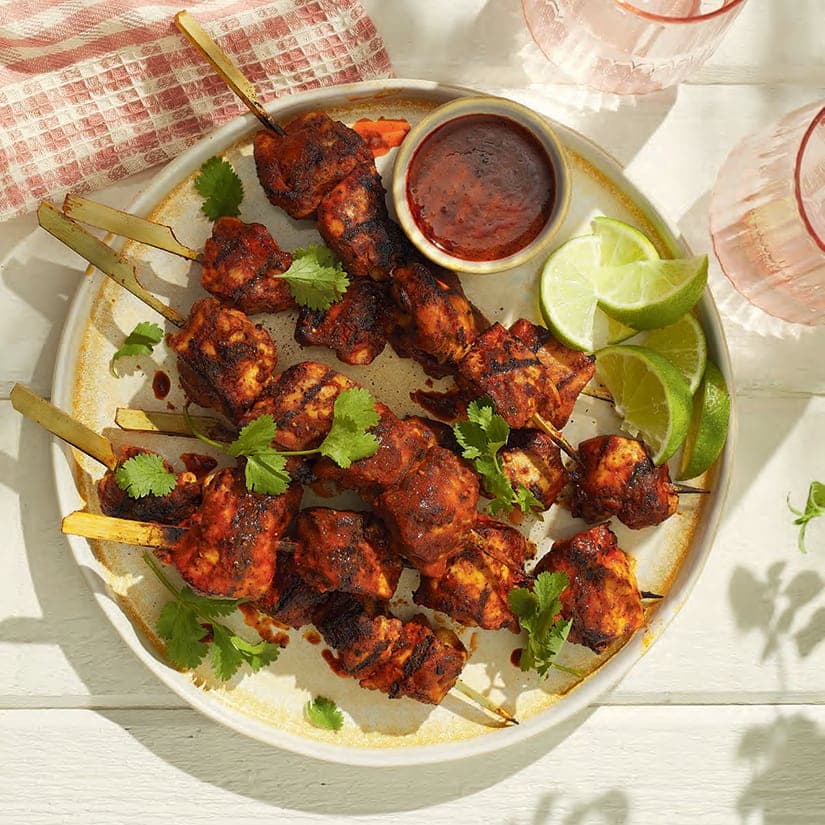 - Entre-temps, verser la marinade réservée dans une petite casserole et porter à ébullition. Laisser mijoter 5 minutes ou jusqu'à ce qu'elle ait légèrement épaissi. Au moment de servir, parsemer les brochettes de coriandre hachée. Accompagner de la marinade et de quartiers de lime, si désiré.