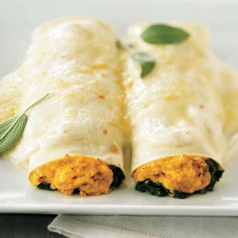 Cannellonis à la courge, aux épinards et aux trois fromages