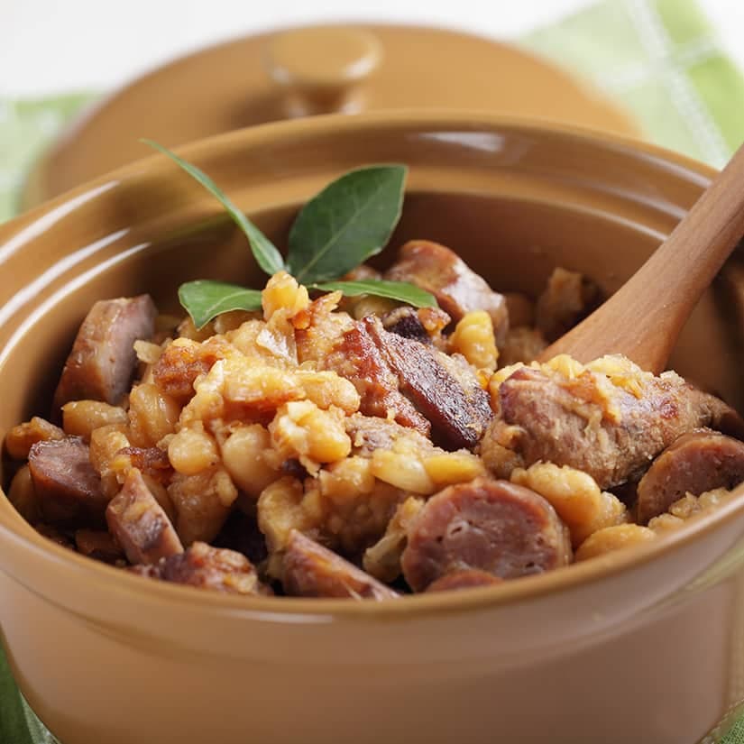 - Ajouter les saucisses, 3/4 t (180 ml) de la chapelure, les haricots blancs, le thym haché, le sel et le poivre et mélanger. Couvrir et poursuivre la cuisson à intensité élevée pendant 15 minutes. Retirer les brins de thym et la feuille de laurier. (Vous pouvez préparer le cassoulet à l'avance, le laisser refroidir complètement et le mettre dans des contenants hermétiques. Il se conservera jusqu'à 3 jours au réfrigérateur ou jusqu'à 1 mois au congélateur.)