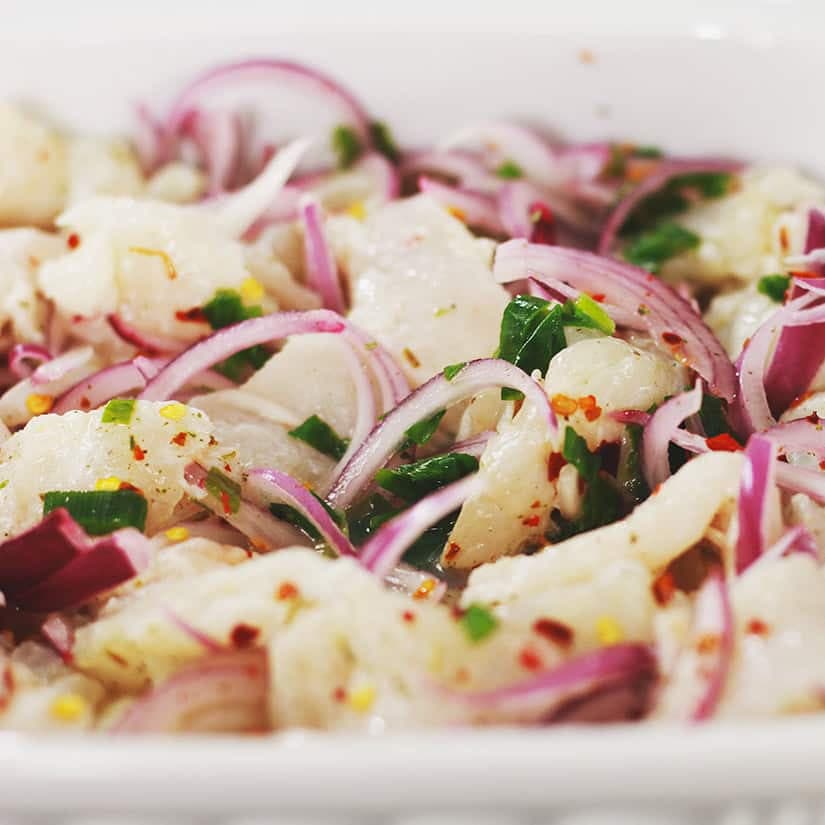 1. Dans un bol, mélanger, le poisson,  le sel et le jus de lime.