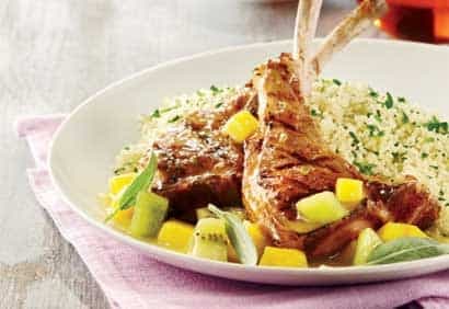 Côtelettes d'agneau grillées, sauce aux fruits tropicaux