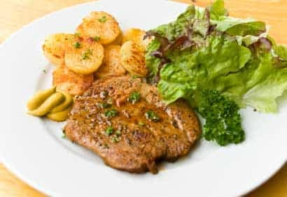 - 1. Dans un petit bol, mélanger l'huile, les fines herbes et le sel. Badigeonner les côtelettes de porc du mélange d'huile. Dans un poêlon, faire dorer les côtelettes à feu moyen-vif pendant environ 8 minutes ou jusqu'à ce qu'elles soient encore légèrement rosées à l'intérieur (les retourner une fois). Réserver au chaud.