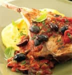 - Dégraisser le poêlon et chauffer le reste de l'huile. Ajouter l'oignon, l'ail, le poivre, les flocons de piment fort et le sel et cuire à feu moyen pendant 4 minutes ou jusqu'à ce que l'oignon ait ramolli. Ajouter les tomates, en raclant le fond du poêlon pour en détacher les particules. Ajouter la pâte de tomates, les olives et les câpres et porter à ébullition. Réduire le feu et laisser mijoter pendant 15 minutes ou jusqu'à ce que la sauce ait épaissi. Ajouter le basilic et mélanger.