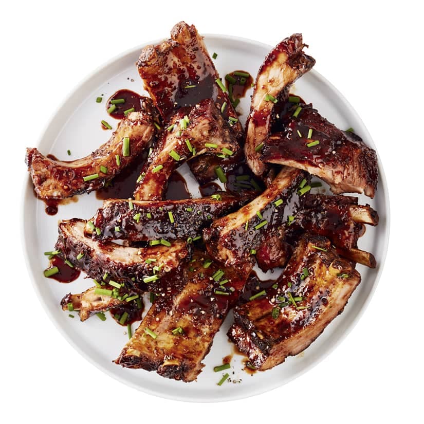 - Réduire en purée le miel, la sauce barbecue, l'eau, le gingembre et la sauce soya. Retirer les côtes levées du four et les badigeonner des 2/3 de la sauce. Cuire les côtes levées à découvert au four préchauffé à 450 °F (230 °C) pendant 20 minutes ou jusqu'à ce qu'elles soient caramélisées (retourner à la mi-cuisson). Laisser reposer 5 minutes et couper en portions de 1 ou 2 côtes. Mélanger les côtes levées et le reste de la sauce.