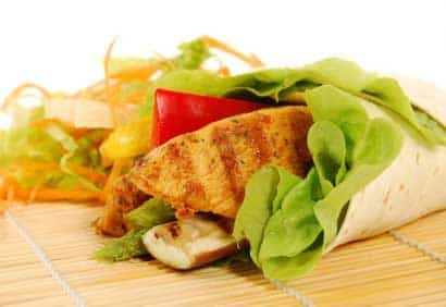 - Au moment de servir, répartir le poulet, le poivron, la laitue et le fromage sur les tortillas et garnir de salsa. Rouler en serrant bien.