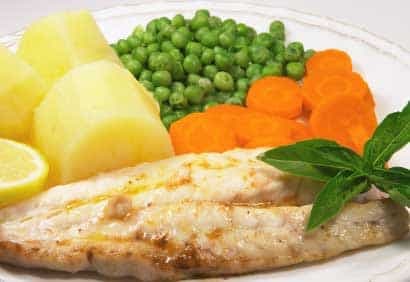 Filets de poisson à l'aneth, pommes de terre et carottes persillées