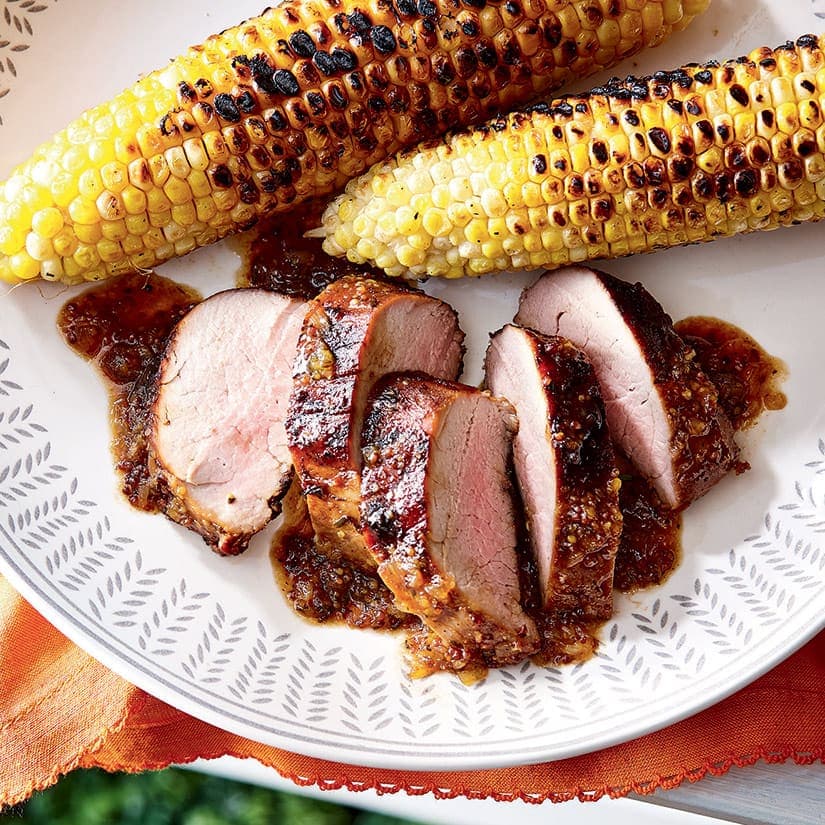 - Régler le barbecue à puissance moyenne. Retirer les filets de porc de la marinade et les mettre sur la grille huilée du barbecue. Fermer le couvercle et cuire de 15 à 20 minutes ou jusqu'à ce que les filets soient dorés à l'extérieur et encore légèrement rosés à l'intérieur (les retourner de temps à autre et les badigeonner de marinade à la mi-cuisson). Mettre les filets de porc sur une planche à découper et les couvrir de papier d'aluminium, sans serrer. Laisser reposer de 5 à 10 minutes.