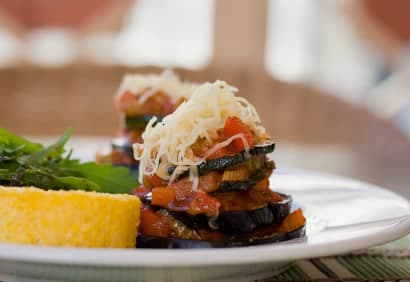 - Dans une grande casserole, chauffer 2 c. à tab (30 ml) de l'huile à feu moyen. Ajouter l'aubergine, la courgette, le poivron, l'oignon, l'ail, le sel et les flocons de piment fort et cuire, en brassant de temps à autre, pendant environ 10 minutes ou jusqu'à ce que les légumes aient ramolli. Ajouter les tomates, la pâte de tomates et l'origan. Couvrir et laisser mijoter pendant environ 15 minutes ou jusqu'à ce que la préparation ait épaissi et que les légumes soient tendres. Ajouter le persil et mélanger.