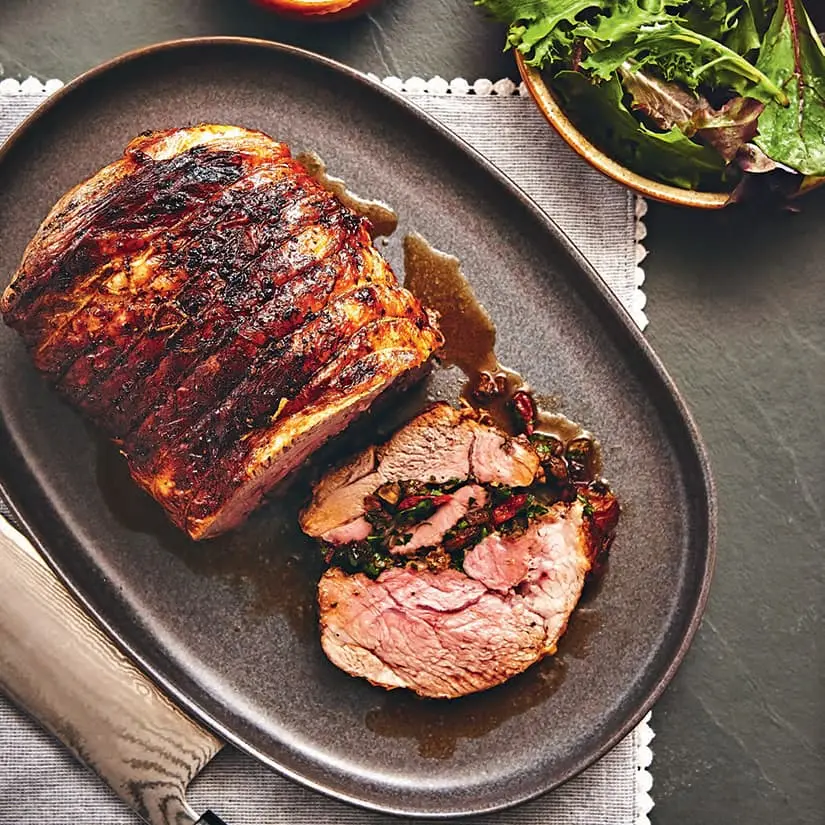 Gigot d’agneau farci aux fruits secs et aux pistaches