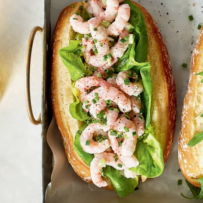 - Répartir la préparation de crevettes dans les pains, sur la laitue.