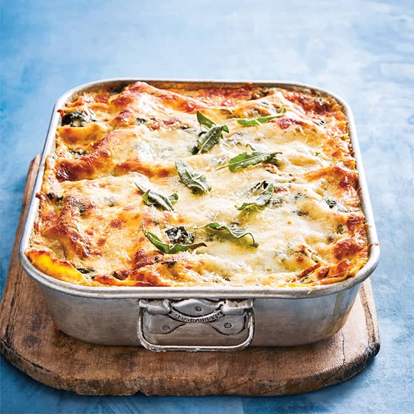 - Dans un plat de cuisson de 13 po x 9 po (33 cm x 23 cm) beurré, étendre 1 t (250 ml) de la béchamel. Couvrir d'une couche de lasagnes, en les faisant se chevaucher légèrement et en les coupant au besoin, et presser légèrement. Couvrir de la moitié des rondelles de patates douces, puis parsemer de 1 3/4 t (430 ml) du mélange de fromages réservé. Couvrir des épinards réservés, puis des tomates rôties. Couvrir d'une autre couche de lasagnes, puis de 1 t (250 ml) de la béchamel, de 1 3/4 t (430 ml) du fromage et du reste des patates douces. Parsemer de 1 3/4 t (430 ml) du fromage, puis couvrir du reste des lasagnes, en pressant légèrement le tout. Étendre le reste de la béchamel sur le dessus, puis parsemer du reste du fromage. (La lasagne se conservera jusqu'au lendemain au réfrigérateur ou jusqu'à 2 mois au congélateur. Laisser décongeler au réfrigérateur et augmenter le temps de cuisson de 15 minutes.)