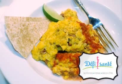 - Dans une casserole, faire chauffer un peu d'huile d'olive à feu moyen, y faire revenir les oignons avec l'origan, le cumin et la coriandre, 10 min ou jusqu'à ce que les oignons soient dorés. Ajouter le bœuf et poursuivre la cuisson en brassant pour émietter et faire brunir la viande. Ajouter les tomates, laisser mijoter à découvert 15 min ou jusqu'à épaississement.