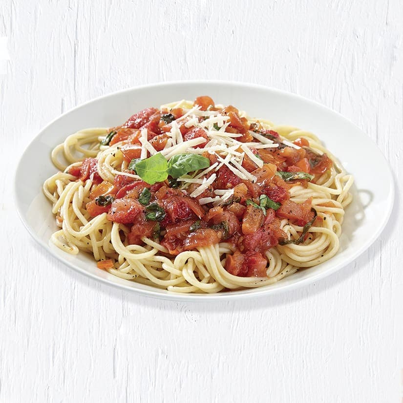 - Entre-temps, dans une casserole d'eau bouillante salée, cuire les pâtes 8 minutes ou jusqu'à ce qu'elles soient al dente. Dans un grand bol, mélanger les pâtes et la sauce. Servir.