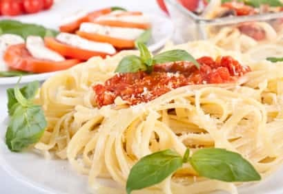 - Au moment de servir, napper les pâtes de la sauce et parsemer des olives et des copeaux de parmesan, si désiré.