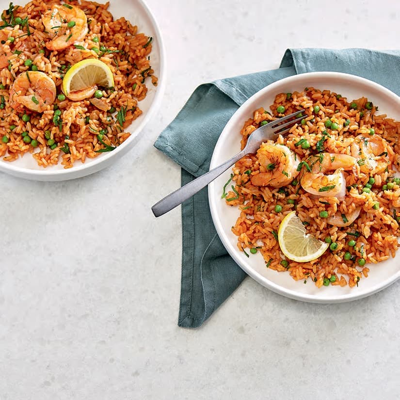 2. Entre-temps, dans un grand poêlon, chauffer l'huile à feu moyen-vif. Ajouter les crevettes et cuire 2 minutes de chaque côté ou jusqu'à ce qu'elles soient rosées. Ajouter le zeste de citron et mélanger. Retirer le poêlon du feu, puis ajouter le persil et le jus de citron en remuant doucement. Ajouter les crevettes au riz et mélanger délicatement. Servir le pilaf de riz avec des quartiers de citron.