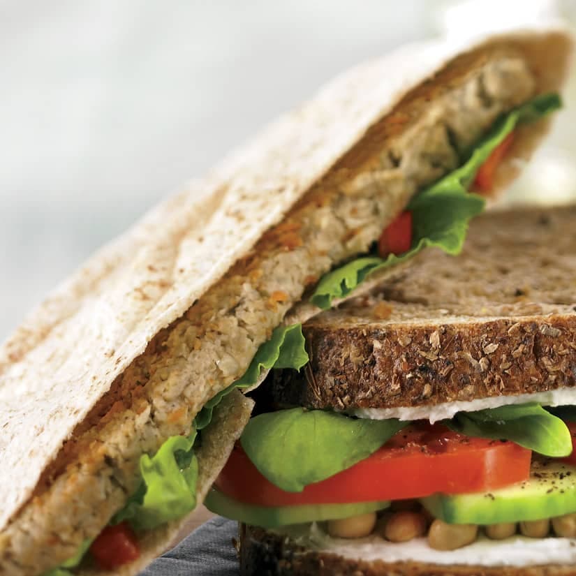 - Ouvrir les pains pitas de manière à former une pochette. Étendre le végépâté à l'intérieur des pochettes et garnir de la salade.
