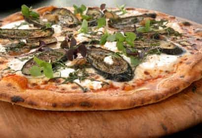 - Sur une surface légèrement farinée, abaisser la pâte en un cercle de 14 po (35 cm) de diamètre et la glisser sur une plaque à pizza huilée. Étendre la sauce sur la croûte. Parsemer du basilic et garnir de l'aubergine grillée, des filets d'anchois et du fromage égoutté.