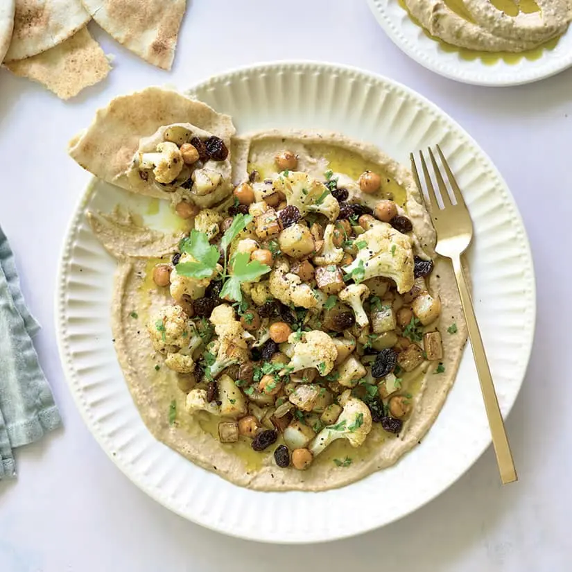 - Pendant ce temps, dans le plat de cuisson, mélanger le chou-fleur, les pois chiches, les épices et 1 c. à soupe (15 ml) d'huile. Ajouter les patates rissolées et mélanger. Cuire 10 minutes au four ou jusqu'à l'obtention d'une belle coloration. Laisser reposer quelques minutes. Ajouter les raisins et mélanger.