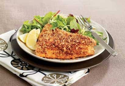 - Saler et poivrer les filets de truite. Enrober les filets du mélange de chapelure en pressant légèrement pour le faire adhérer de chaque côté.