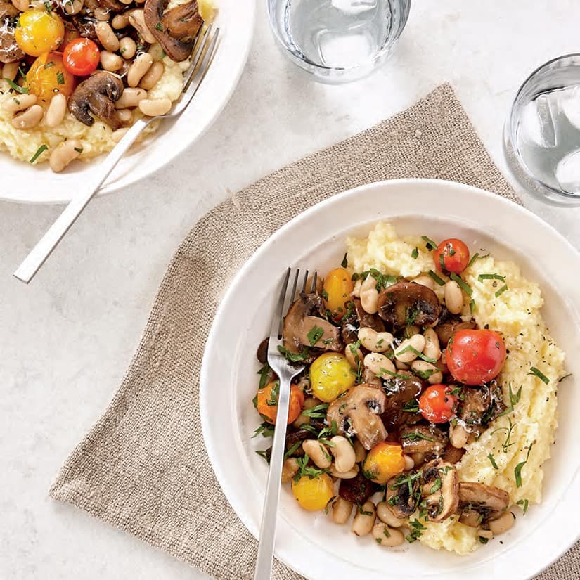 Polenta crémeuse aux champignons et aux haricots blancs