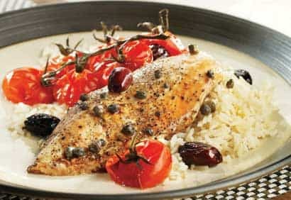 Poulet aux tomates confites et aux olives noires