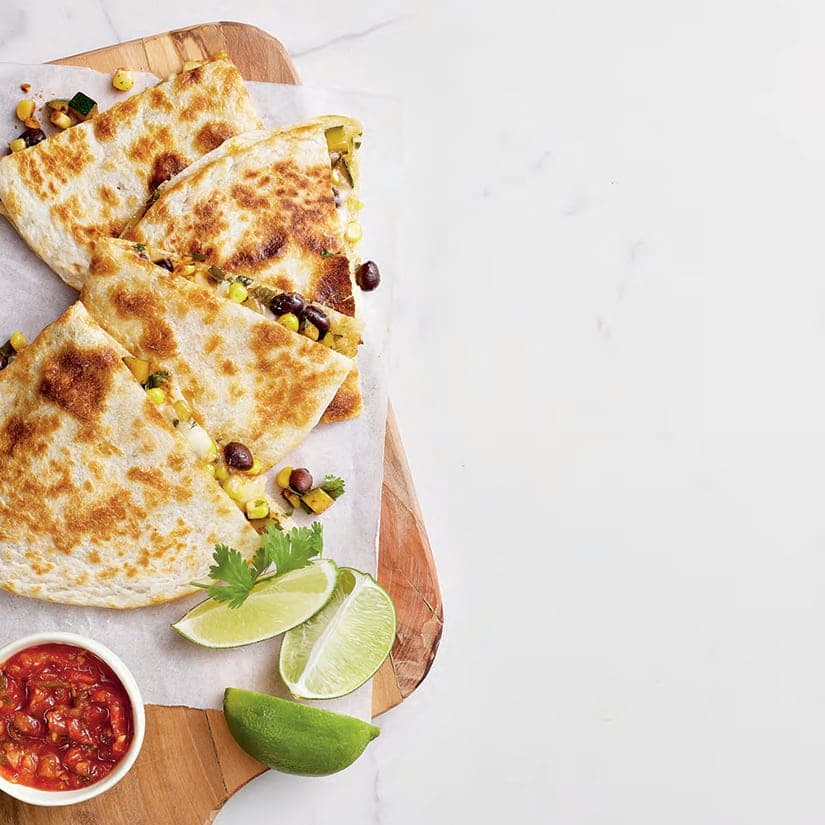 Quésadillas aux haricots noirs, au maïs et aux courgettes