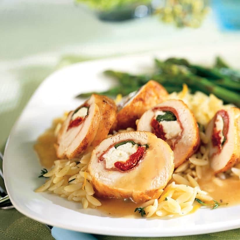 Roulades de poulet au prosciutto, au fromage de chèvre et aux tomates séchées