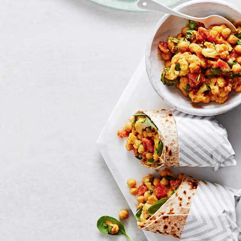 Sandwichs roulés au cari de chou-fleur et de pois chiches
