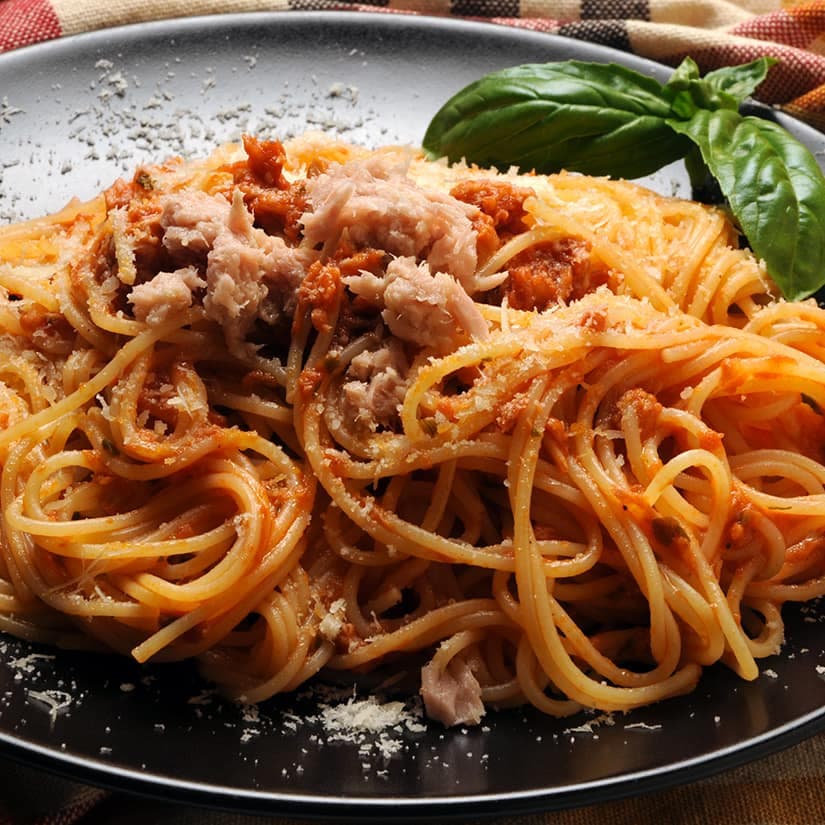 - Dans le poêlon, ajouter la moitié du basilic et le sel et poursuivre la cuisson pendant 5 minutes ou jusqu'à ce que la sauce ait épaissi. Ajouter le thon et le reste du basilic et mélanger. Poivrer. (Vous pouvez préparer la sauce à l'avance, la laisser refroidir et la mettre dans des pots de verre. Elle se conservera jusqu'à 2 jours au réfrigérateur.) Réchauffer au moment de servir.