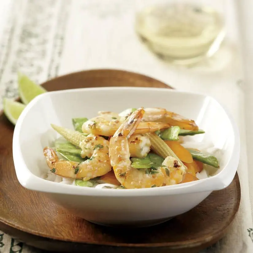 - Dans un wok, chauffer 1 c. à tab (15 ml) de l'huile à feu moyen-vif. Ajouter le gingembre et cuire, en brassant, pendant 1 minute ou jusqu'à ce qu'il dégage son arôme. Ajouter les crevettes et cuire, en brassant, pendant environ 4 minutes ou jusqu'à ce qu'elles soient rosées. Réserver au chaud.